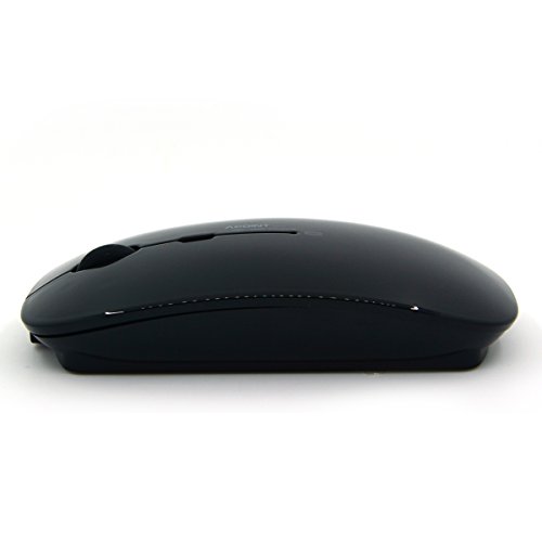 SROCKER T3 Ultra-thin 2.4GHz Wireless Silent Click Optical Mouse/Mice with 4 Buttons and Nano USB Receiver for Laptop/PC (Black)