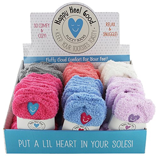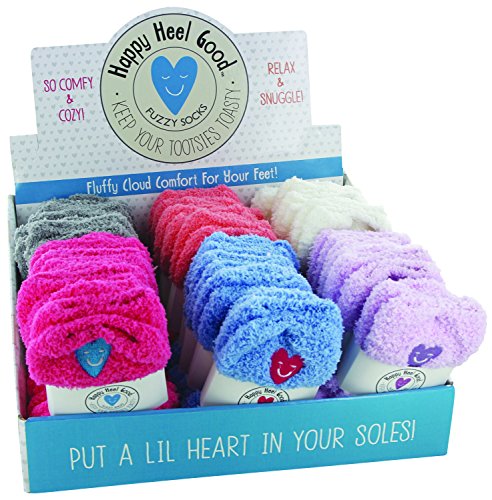 -. Binding : Apparel -. Brand : Happy Heel Good -. Department : womens -. Feature : One size fits most. / Feel the Cush! / Put a Lil Heart in Your Soles! / Don't worry, get happy! / And keep your tootsies toasty. -. IsAdultProduct : 0 -. ProductGroup : Apparel -. ProductTypeName : SOCKSHOSIERY -. Size : One Size -. Title : Happy Heel Good Fuzzy Socks