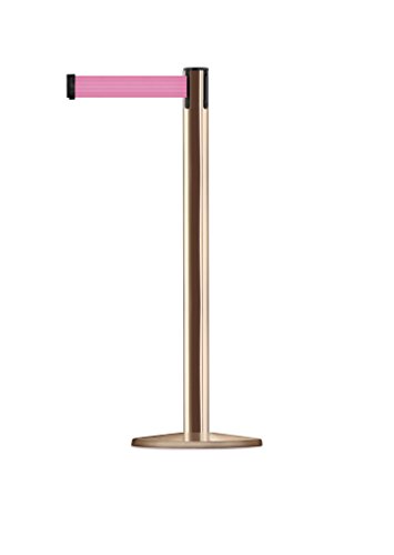 Tensabarrier 889U-2P-2P-STD-NO-F3X-C Polished Brass Post, 2" Wide, 7' 6" Length "Florescent Pink" Belt, 90" Length, Steel