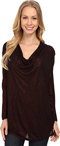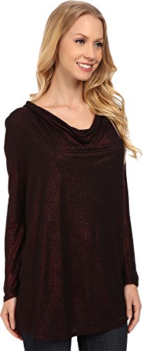 This updated cowl neck top features 3/4 length sleeves and stylish foil details.