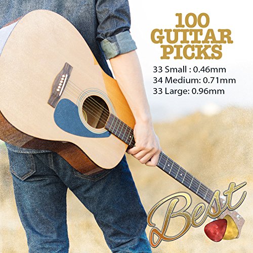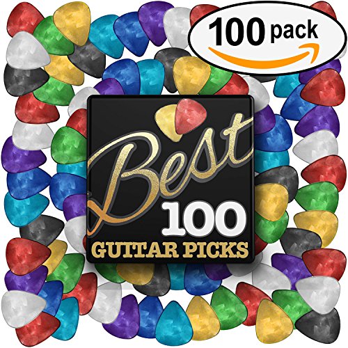 100 PICKS IN VARIETY OF DESIGNS & COLORS - Compare & Save! 100 Individual Guitar Picks in an Assortment of Colors & Designs. Small Box Compact acts as a Perfect Guitar Pick Holder.
