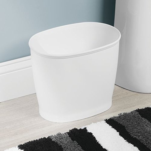 mDesign Oval Shatter-Resistant Plastic Small Trash Can Wastebasket, Garbage Container Bin for Bathrooms, Kitchens, Home Offices, Dorm Rooms - White