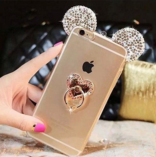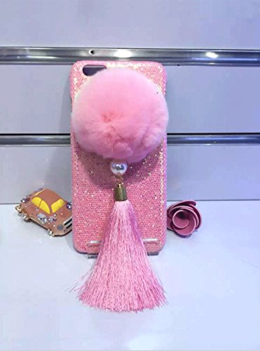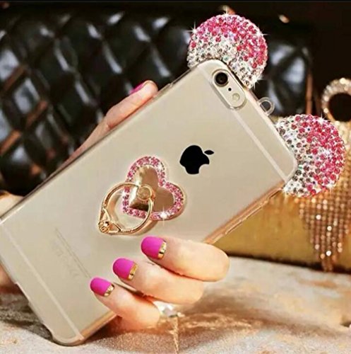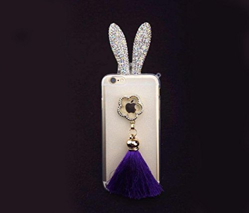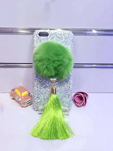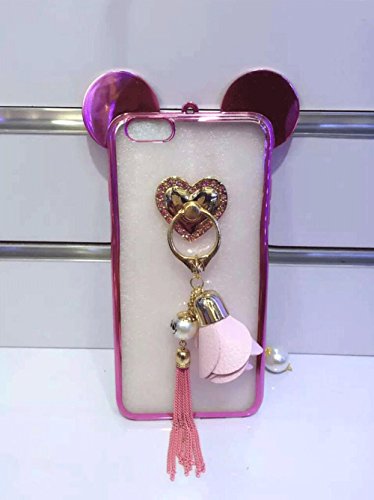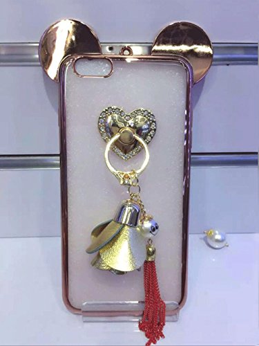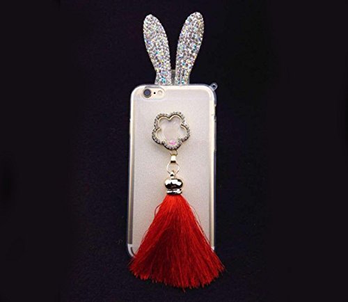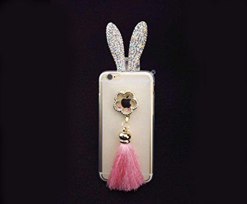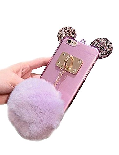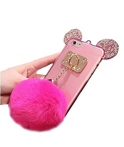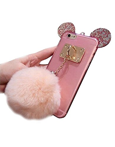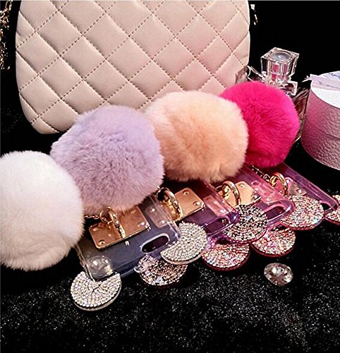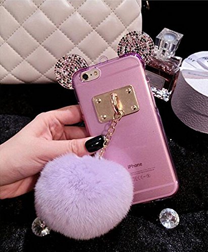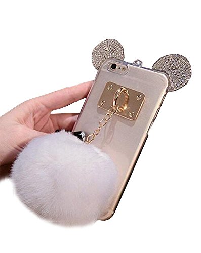 Super Cute 3D Handmade Diamond ears Handcraft With Metal Ring Metal Buckle Pendant Fur Plush Ball Clear Cover case