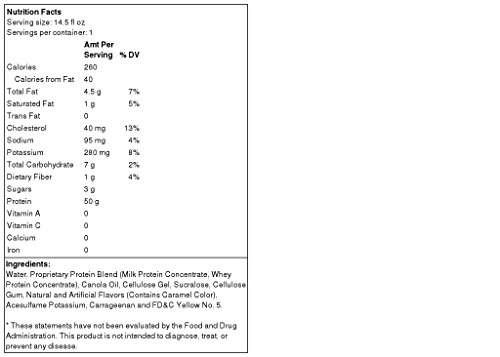 -. Feature : 50 Gram Protein Shake; Serious Protein; Lean Muscle Support; Serious BCAAs; Minimal Sugar and Fat; 50 gm of Protein From Milk and Whey; Essential Amino Acids Including BCAAs; 4 / 5 gm of Fat; 3 gm of Sugar