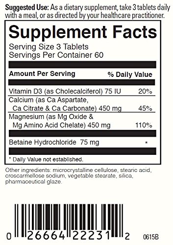 A dietary supplement to support bone function*. This formula contains three types of chelated Calcium-calcium citrate, calcium aspartate, and calcium carbonate, so your body can assimilate the minerals efficiently. The Calcium and Magnesium potencies are balanced in a 1:1 ratio, at 450 mgs of each and Vitamin D3 is added to make this a complete formula. A deficiency in Vitamin D3 can inhibit your bodys ability to absorb Calcium and Magnesium*.