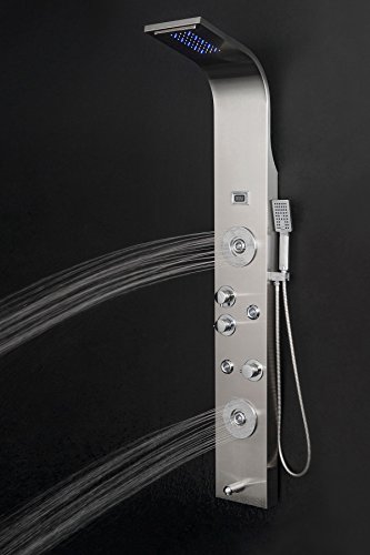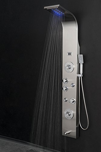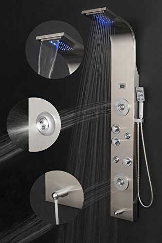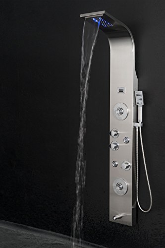 Golden Vantage 63" Rainfall Waterfall Stainless Steel Multi-Function Bathroom Shower Panel System w/ LED Head Jets Handheld Wand