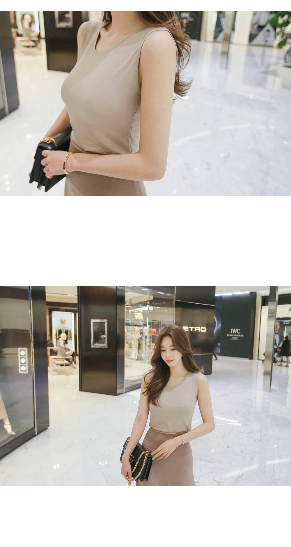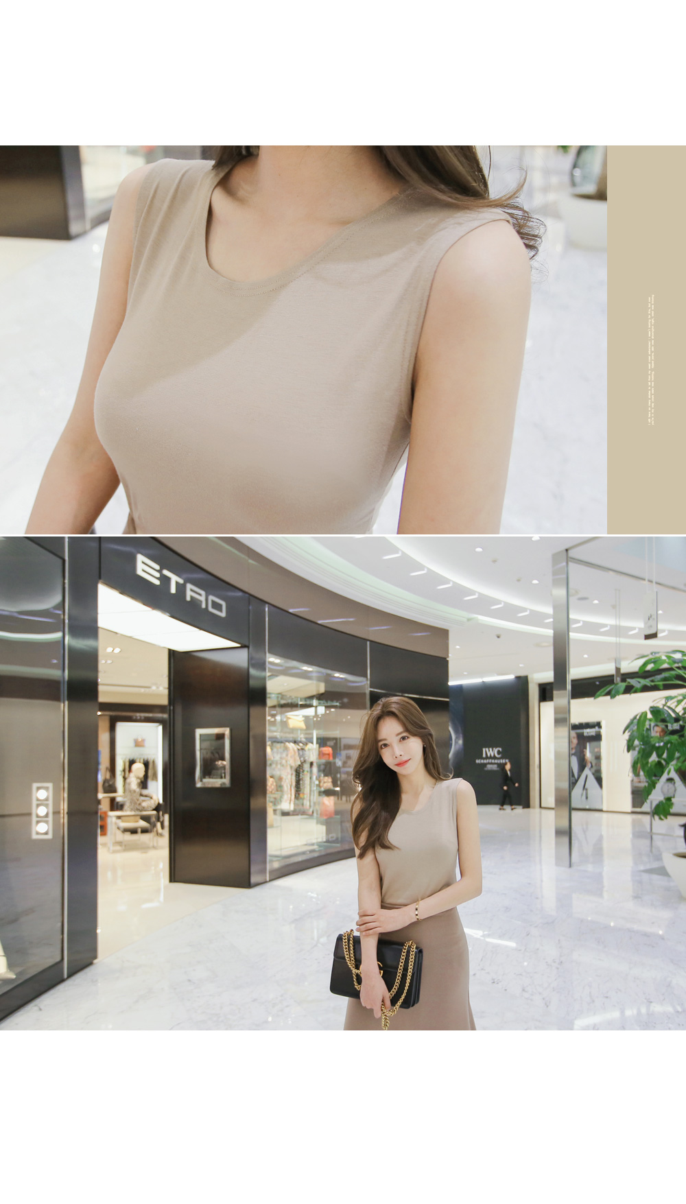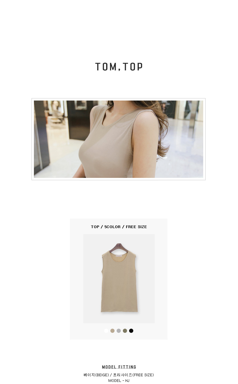 가볍고 부드러운 촉감으로 착용감이 좋으며,기본 디자인으로 다양한 스타일에 레이어드하기에딱 좋은 아이템이랍니다.레이온 소재감으로 편안한 착용감이 기분이 너무 좋구요~슬림핏으로 라인감있게 찰랑찰랑 떨어지는 소재감이 기분좋은 나시예요.베이직한 디자인으로더욱 완성도 있는 코디를 만들어줄거예요~ 계절에 상관없이 꼭 하나쯤 필요한 민소매 탑,베이지, 아이보리, 블랙, 그레이, 카키 다섯가지 컬러로 만나보세요.모델 회지언니는 베이지 컬러를 착용해주었구요자켓이나 가디건안에 이너로도 활용도 너무 좋아요!