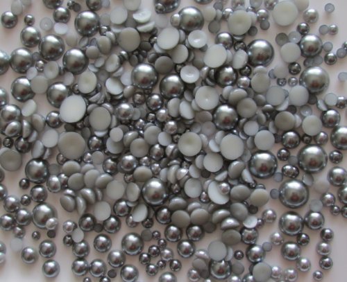500pcs Gray Assorted Mixed Sizes Flat Back Pearl Cabochon By Pixiheart