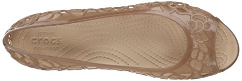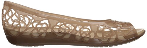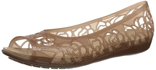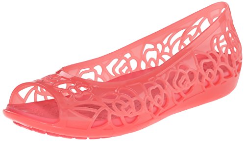Crocs Womens Isabella Jelly Flat Shoes Details: Incredibly light and easy to wear, the Isabella Jelly Flat is a beautifully feminine style with a peep toe design. Soft TPU translucent uppers with a floral cutout pattern. Iconic comfort: original Croslite foam cushion.Feature