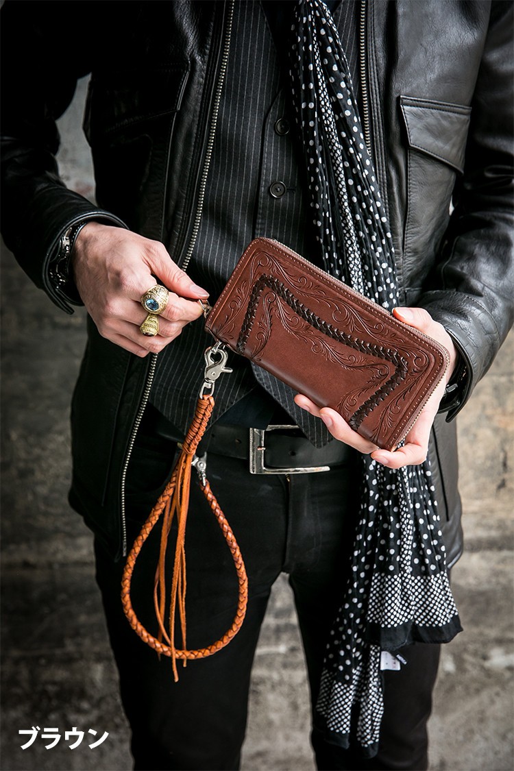 厚めの牛皮を丹念に植物タンニンでなめして仕上げられた素材をハンドメイドっで作りあげたラウンドファスナーウォレット。