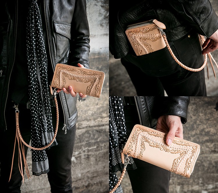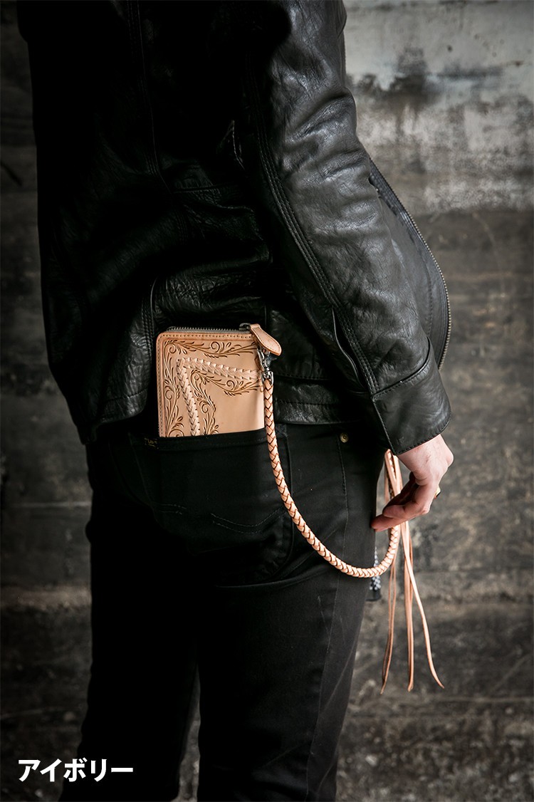 しっかりカードが入るため、機能性も充実しております。ファスナーは、YKKを使用しており滑りがよく高品質なファスナーを使用しております。ドロップハンドルがついているので、ウォレットチェーンもセットでぜひご検討くださいませ。