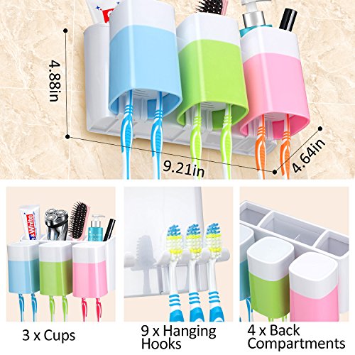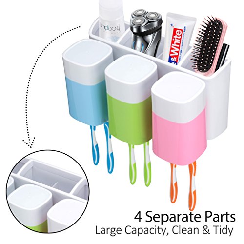 - Large Capacity: with 3 cups(350ml) for family use, suitable for 6pcs electric toothbrush or 9pcs normal toothbrush, 4 storage compartments.