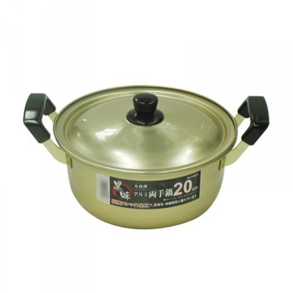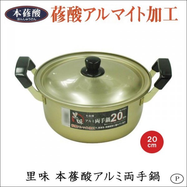 蓚酸アルマイト加工で、耐食性に優れた両手鍋20cmです。