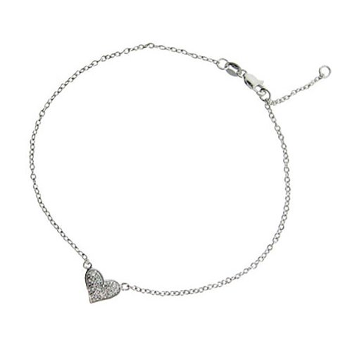 -. Title : Sterling Silver Pave Cubic Zirconia Heart Anklet