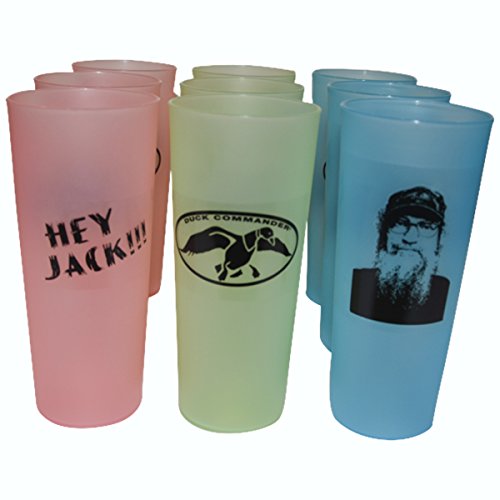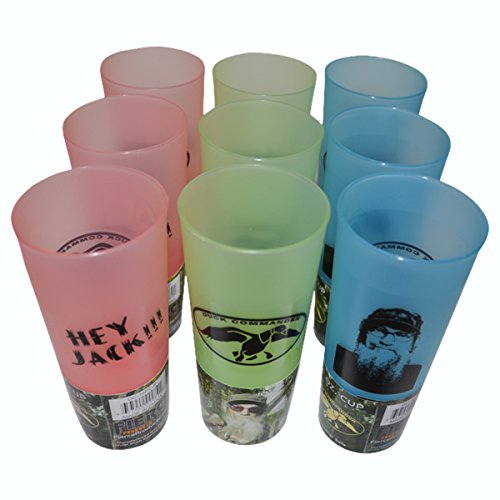 -. Brand : Duck Dynasty -. Color : blue, pink, green -. Feature : Pack of 9 Duck Dynasty Plastic Cups - Green, Pink, and Blue / Official Duck Dynasty Merchandise - Si Robertson Tea Cup / Each Uncle Si Plastic Tea Cup Holds Approximately 16 ounces / All Cups Feature Duck Commander Logo on Front / Back of Cups - Blue Picture of Uncle Si, Pink Says "Hey Jack", Green Cup Back is Blank -. Label : Duck Commander -. Manufacturer : Duck Commander -. PackageQuantity : 9 -. ProductGroup : Kitchen -. ProductTypeName : KITCHEN -. Publisher : Duck Commander -. Size : 16 oz -. Studio : Duck Commander -. Title : Duck Commander Duck Dynasty Uncle Si Plastic Tea Cups Pink, Green, Blue Drinkware (Pack of 9)