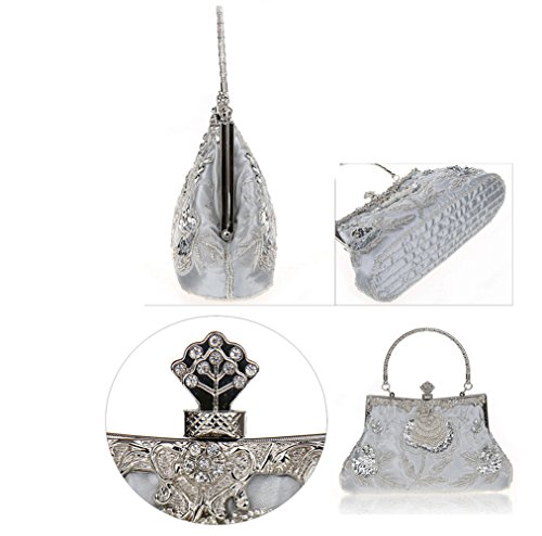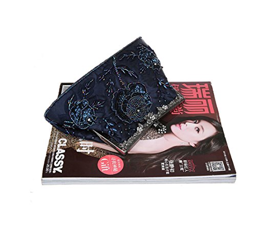 -. Feature : Removable metal shoulder chain with hidden hardware silver handle. Jeweled lift snap closure. / This is a very rarely design on the market, definitely an eye-catching clutch to sparkle up you look. / Material: Beads, sequins and satin. Approx Dimension: Exterior - 9" L x 5" H x 3" W; Interior - 8.5" L x 4.5" H x 2.5" W; Drop 21". / Small but roomy, you can easily fit your cell phone, car keys, mirror, and some makeup. / You'll be the party girl with the right accessory,Comes in a variety of colors to match your evening look.