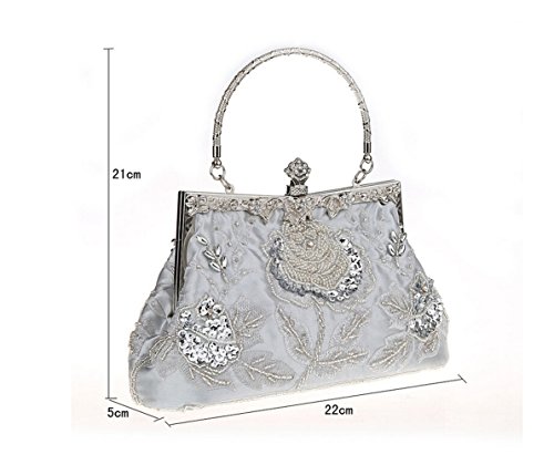 -. Title : Bopstyle Women's Sequin Beaded Party Clutch Vintage Rose Purse Evening Handbag