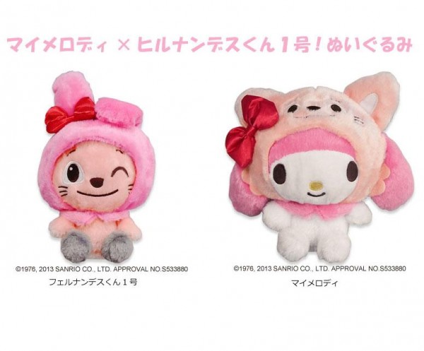 | 日本テレビ系列で放送されている 『ヒルナンデス!』でおなじみのキャラクター『フェルナンデスくん1号』とサンリオの人気キャラクター『マイメロディ』がコラボレーションしたぬいぐるみです!それぞれの頭巾は取り外しも可能です♪ |