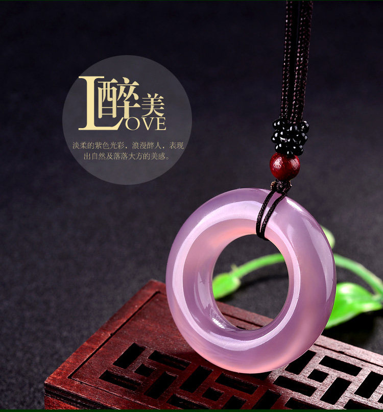 石仙石仙通透水润紫玉髓平安扣圈玛瑙挂件男女款情侣玉石项坠