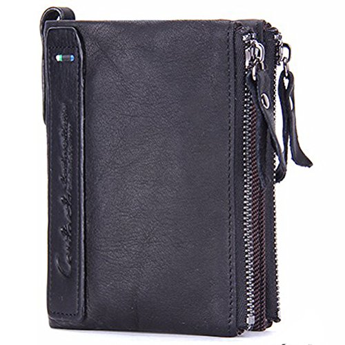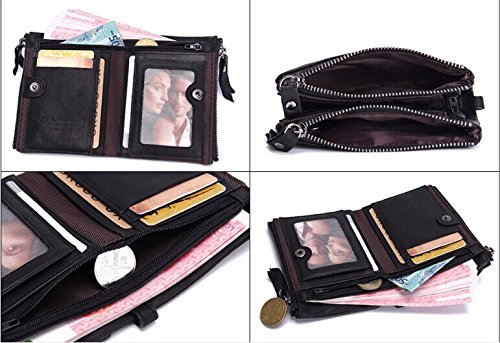 (《오만》)WO MAN WEI SI 반 접기 지갑 가죽 라운드 패스너 면허증 지갑카드7 매수납 동전지갑 맨즈 콤팩트