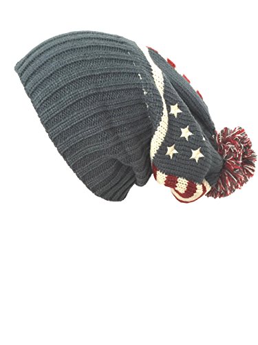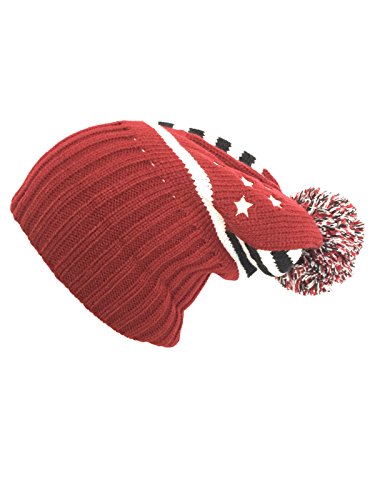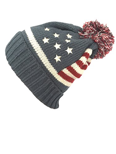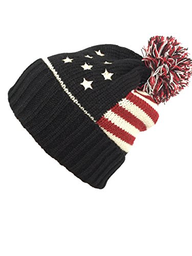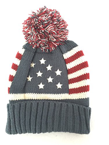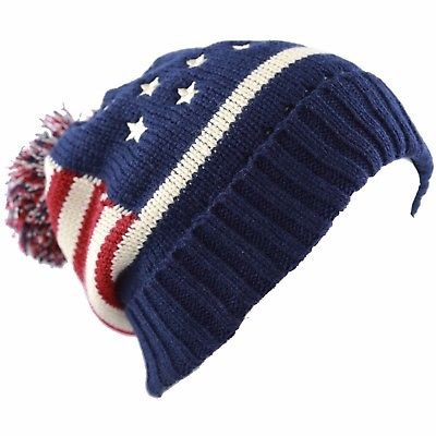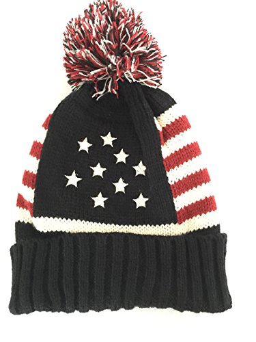 (NY GOLDEN FASHION)/Accessories/Hats/DIRECT FROM USA/NY GOLDEN FASHION Women Men American Flag Cuffed Knit USA Flag Patriotic Beanie With Pom Pom Wi...