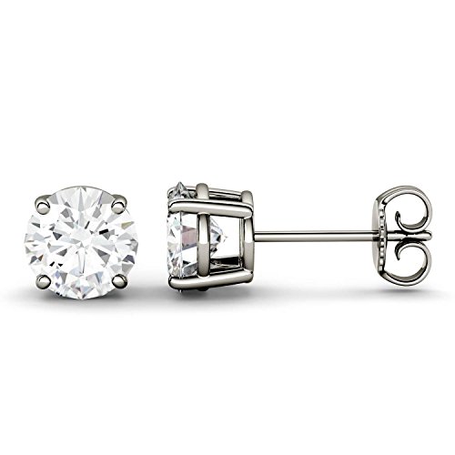 -. Title : Forever One 8.0mm Round Moissanite Stud Earrings, 3.80cttw DEW (G-H-I) By Charles & Colvard
