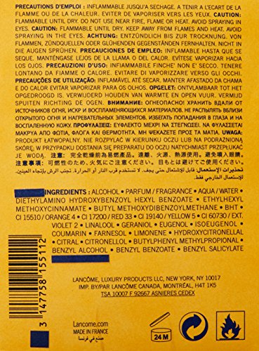 ReleaseDate : 2005-11-02 Studio : Lancome Publisher : Lancome Binding : Health and Beauty Product Description Introduced in 1995. Fragrance notes: many florals including mimosa, white flowers, rose, and the scent of vanilla. Recommended use: evening.When?applying?any fragrance please consider that there are several factors which can affect the natural smell of your skin and, in turn, the way a scent smells on you.? For instance, your mood, stress level, age, body chemistry,?diet, and current medications may all alter the scents you wear.??Similarly, factor such as dry or oily?skin can even affect the amount of time a fragrance will last after being applied 0