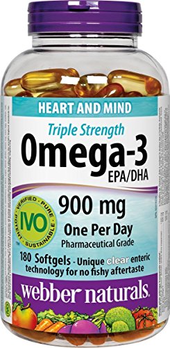 Triple Strength Omega-3 is a one-per-day omega-3 supplement that offers 900 mg of EPA/DHA for optimal cardiovascular, mood and brain support. Omega-3 fatty acids are particularly important for supporting cardiovascular health and brain function, reducing serum triglycerides/triacylglycerols and promoting healthy mood balance. Omega-3 also helps reduce the pain caused by rheumatoid arthritis in adults when used in conjunction with conventional therapy. EPA and DHA work together for the maintenance of good health.Feature