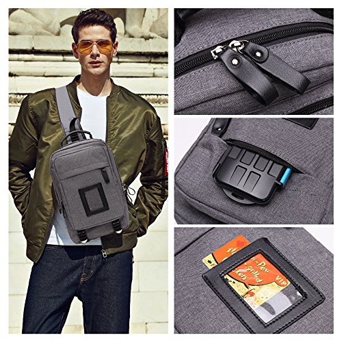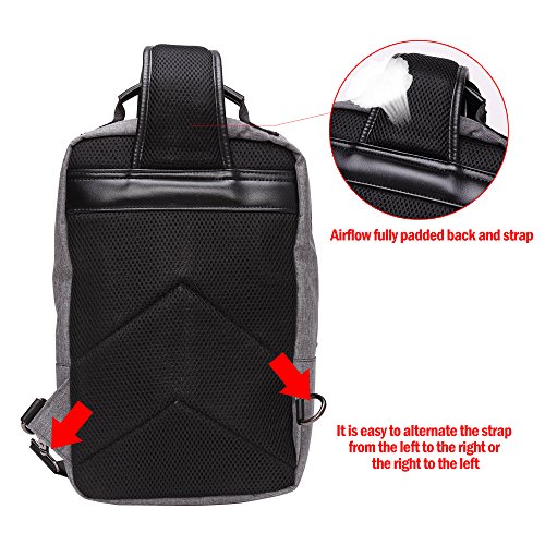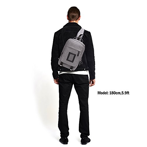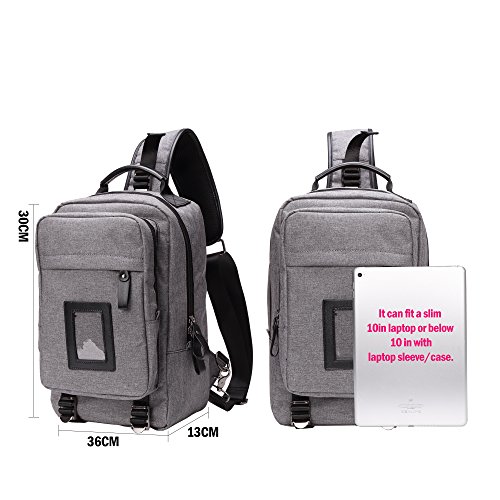 -. Feature : Material: Soft and durable Washed Canvas with PU Leather Decoration. The messenger sling bag is made of a very durable looking canvas material on the outside and a softer, more luxurious material inside the main compartment. / Size: 10.2*13.6*4.4 in (L*H*W). The shoulder bag can fit a laptop up to 10inches with laptop sleeve/case. This canvas leather chest bag is not a large backpack, So please kindly refer the size dimensions before placing your order. Thank you / Multi-compartments: The canvas chest bag is vintage and multifunctional with lots of pockets. 1 zipper compartment is in the front ; 1 inner zipper pocket inside the compartment .1 clear Card window in the front for your small item with fashion design, The main compartment is fitted with two zip heads and pulls, 1 inner zipper pocket.1 inner open pocket,1 inner laptop pocket with sleeve for 10 inches, it is a great size to take to a day trip or shopping. / Shoulder Strap:The Padded adjustable shoulder strap(back is also padded) for carrying comfortable ,The straps is adjustable and ultra-comfortable across your back and chest. The bag can be either carried with the hand handle or adjustable shoulder strap. It can act as a single-shoulder bag/sling bag, or a cross-body bag for use. / Ideal for outdoor sports (hiking, camping, climbing, cycling, etc) and travel use.