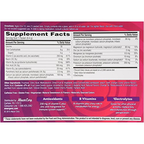 Emergen-C Kidz Dietary Supplement Drink Mix With 250mg Vitamin C, 0.33 Ounce Packets, Caffeine Free (Fruit Punch Flavor, 30 Count)