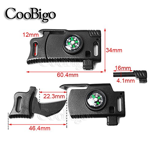 -. Title : 5pcs Pack Black 1/2" Compass Flint Scraper Fire Starter Whistle Buckle Plastic Parachute 550 Paracord Bracelet Outdoor Camping Emergency Survival Travel Kits Backpack Bag Parts