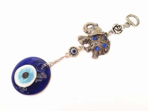 -. Binding : Home -. Brand : Betterdecor -. Color : silver and blue -. Department : home & kitchen -. EAN : 0711978047088 -. Feature : the same is for one Evil eye hanging with lucky elephant and a pounch with "Betterdecor" P.R.Inted on it / Total 7" in length. Elephant:2"x1.5" tall; Evil eye is about 1.6" diameter / You can put them on the reariview of your car, book shelf, cabinet, wall of your office ( home ) or anywhere you desire to protect yourself / It is also a great gift ! -. MPN : B008CBNJVG -. PartNumber : B008CBNJVG -. ProductGroup : Home -. ProductTypeName : HOME -. Size : Total 7" in length. Elephant:2"x1.5" tal -. Title : Blue Evil Eye with Elephant Hanging Ornament (With a Betterdecor Pounch)-026 -. UPC : 711978047088