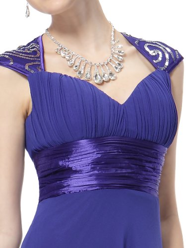 Gorgeous trailing evening dress perfect for all formal occasions, from prom to weddings. This dress features a ruched bust ending in a figure flattering empire waist. The shoulders and back of the dress are enhanced with a swirling sequin pattern making the dress sure to stun no matter where you wear it.Feature