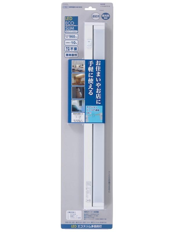 お住まいやお店など様々な場所に手軽にご使用できるスリムなLEDライト「LEDエコスリム多目的灯」の連結用です。「LEDエコスリム多目的灯」との連結は最大12台まで、 「リモコンタイプLEDエコスリム多目的灯」との連結は最大8台まで可能です。長さ違いでの連結もしていただけます。付属の固定用ネジ・両面テープを使えば、電気工事不要で簡単に取り付けることができます。 |