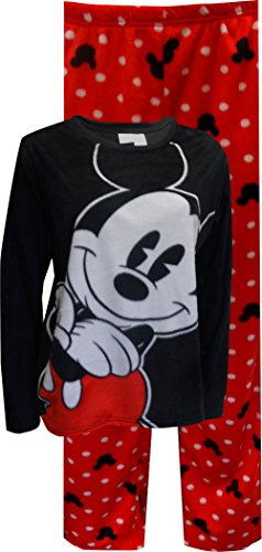 Disney Women's Ladies Minky Pajama Set Mickey, Black, Large