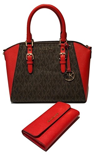 Bundle of 2 items: MICHAEL Michael Kors Ciara Large TZ Satchel bundled with Michael Kors Jet Set Travel Large Trifold Wallet