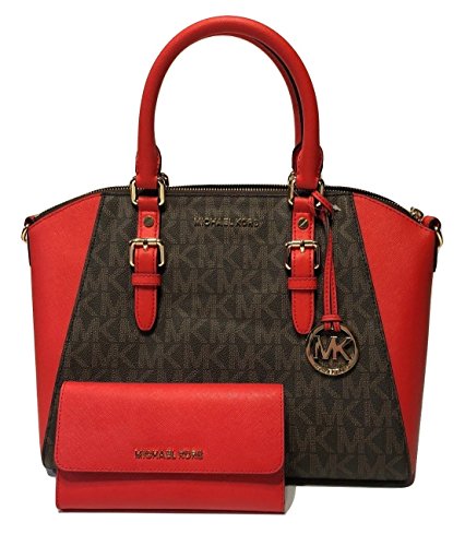 MICHAEL Michael Kors Ciara Large TZ Satchel bundled with Michael Kors Jet Set Travel Large Trifold Wallet