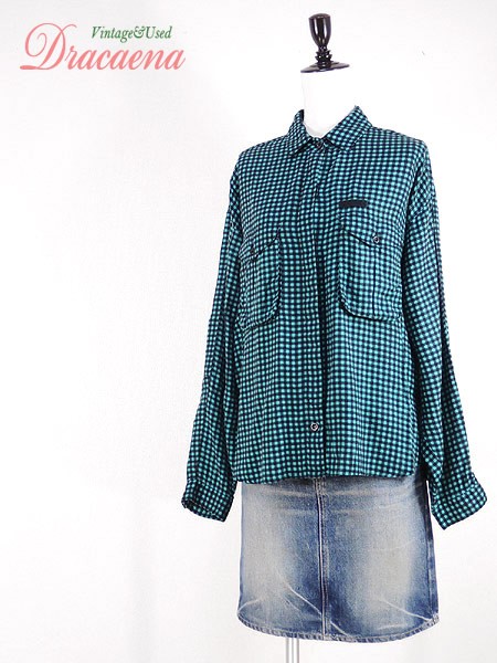 Ladies ブランド- カラー緑・黒 メール便可 コンディション★★★ 素材レーヨン 表記サイズM スタッフコメント一番下ボタン付け替えてあります。 襟元ホツレ、リペア済み。 右袖糸引き有りますがあまり目立ちません。 実寸サイズ 着丈 65 cm 身幅 63 cm 肩幅 52 cm 袖丈 53 cm ※ウエスト・ヒップ以外は平置き採寸【code】#e