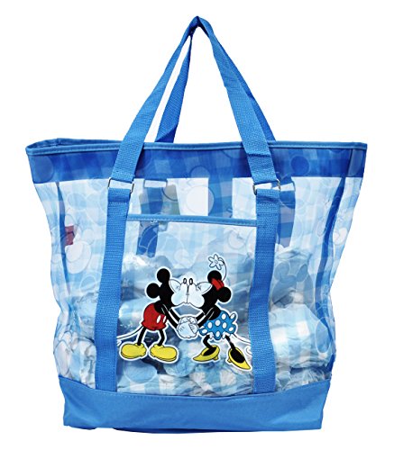 Disney large mesh beach totes. Open top with velcro tab closure, plastic outer pouch pocket. Officially licensed.