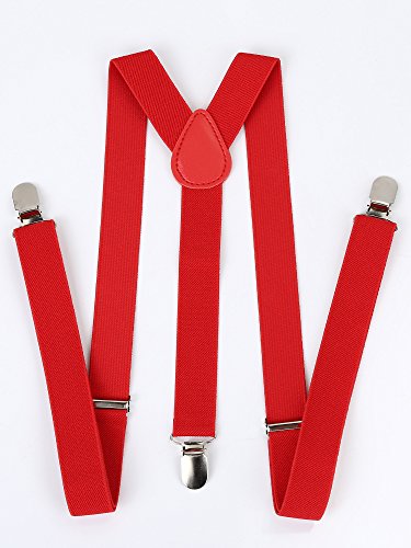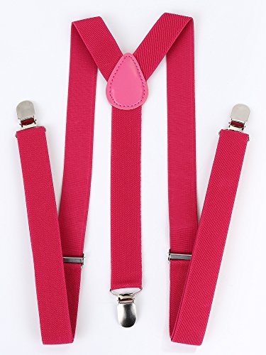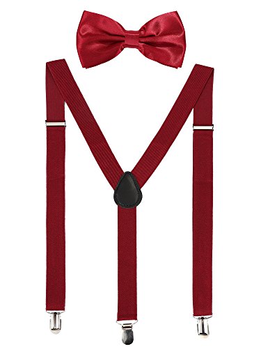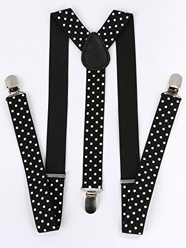 Good quality: The suspender has a durable belt with good elasticity, and the solid clips, made of sturdy metal with teeth, can prevent slipping without hurting your clothes; And the elastic strap will not hurt your shoulder, and its length is adjustable; Moreover, you can easily open and operate the clips which can grab your pants tightly. Chic design: There is a Y-shaped strap design on the back of suspender, and there are rich colors for your easy selection, enough for your spare and replacement in daily life; The adjustable suspender and bow tie set fits for most occasions, suitable for men, women and children. Wide application: With the elegant design and chic style, the stretchy bow tie suspender set serves as wonderful accessories to add charming gloss and make you look more pretty and gentle; You can wear them for everyday wear, performance, cosplay, role play or even family party, and making you become the focus of the party. Warm notices: 1. Please check the color before buying the item. 2. Please allow a little error of color due to different displays. 3. We recommend to wash the item by hands under 30 degree; And if you want wash it by machines, you'd better place it into a laundry bag to avoid wrapping with other clothes. 4. You don't need to iron the item. Specification: Material: polyester, rubber band, metal Bow tie size: 4.3 x 2.3 inches (length x width) Strap width: 2.5 cm/ 0.98 inches Strap length: original length range is 63 - 98 cm/ 24.8 - 38.6 inches, and its stretchy length can reach up to 60 inches Color: black, red, pink, rose red, white, wine-colored, royal blue, rainbow, black with white dots, red with white dots, pink with white dots, plaid Applicable range: men, women and children, suitable for most occasions Package contents: 1 x Adjustable strap clip 1 x Bow tie 0