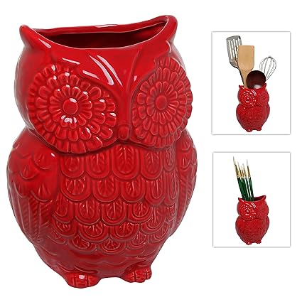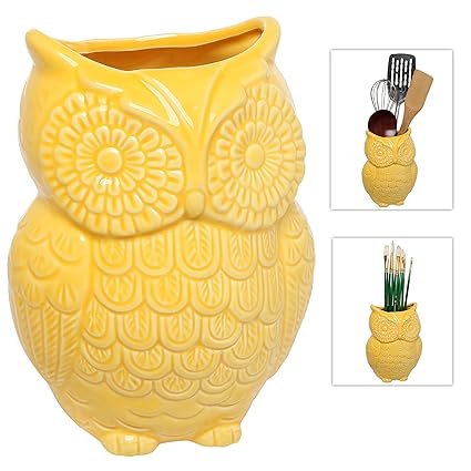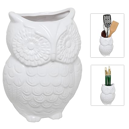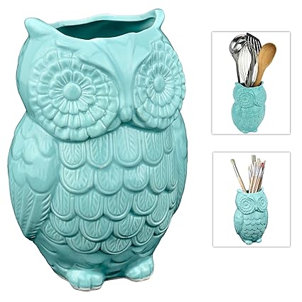 [Product Information]- Ceramic utensil storage crock with a beautiful glossy finish and a charming owl design.