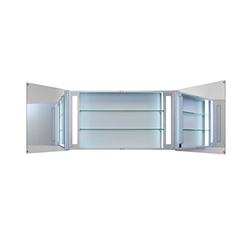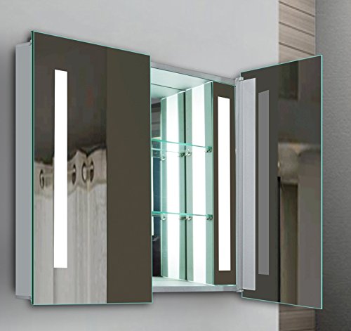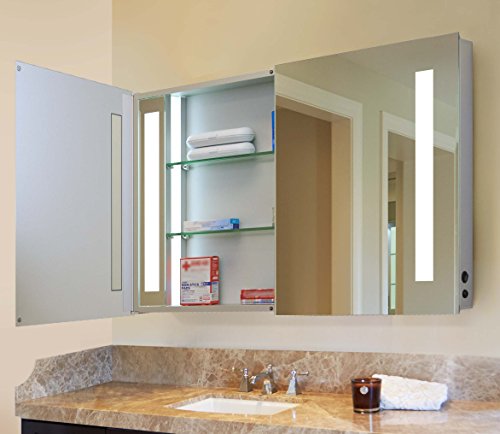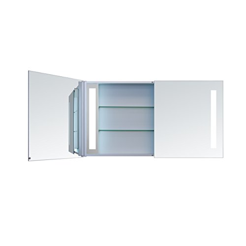 Innoci-USA Zeus LED Double Door Wall Mount Mirrored Lighted Medicine Cabinet Vanity Featuring IR Sensor, Tempered Glass Shelves and Rocker Switch 40" x 26"