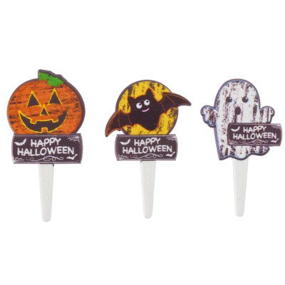 Chalk-O-Lantern Characters Halloween Cupcake Picks - 24 pc