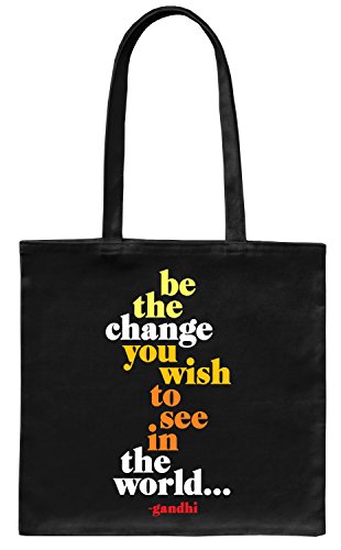 Inspiring Quote Cotton Tote Bag - Be the Change - Gandhi - Shopping Bag - 14" x 14" x 4" with 11" Handle