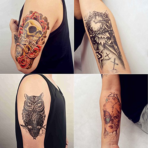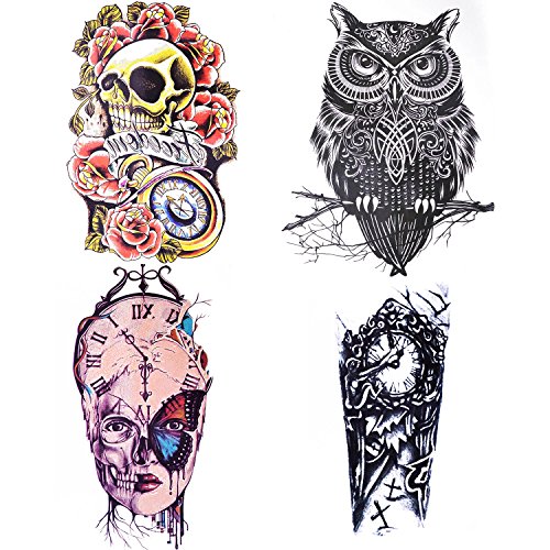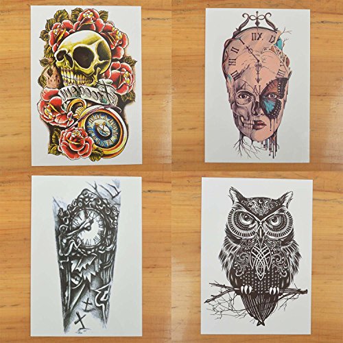-. Binding : Misc. -. Brand : COKOHAPPY -. EAN : 0761710065795 -. Feature : Size:8.27x5.87"inch (4 premium sheets all in one package) / Can stick on your arms, shoulders and any other part of your body, and also it can cover scar on body / Temporary Tattoo last 2-7 days according to the position you stick it / Easily water transfer on and remove by baby oil / See more items, just click on the brand name "COKOHAPPY" which is beside the product title -. IsAdultProduct : 0 -. Label : COKOHAPPY -. Manufacturer : COKOHAPPY -. MPN : TAZH-004 -. PackageQuantity : 1 -. PartNumber : TAZH-004 -. ProductGroup : Beauty -. ProductTypeName : BEAUTY -. Publisher : COKOHAPPY -. Studio : COKOHAPPY -. Title : COKOHAPPY Large Temporary Tattoo , 4 Different Sheets Rose Skull Celtic Owl Clock Machine Butterfly for Men Women -. UPC : 761710065795