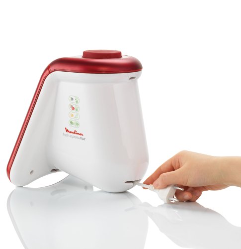Moulinex DJ8115 Elektrisches Schnitzelwerk Fresh Express Max Zerkleinerer (260W) 5 Trommeleinsatze Wurfelfunktion weiss/metallic rot