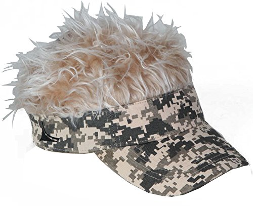 Flair Hair is the ultimate party visor. This visor with spiky hair is sure to grab everyone's attention and get people talking. The visor gives the illusion that it is your hair sticking out of the top. Comfortable to wear and will keep your head as warm as any hat. Flair Hair protects against the sun's harmful UV rays. Velcro strap on the back adjusts from 19"-22" to fit most anyone. The perfect gift for those "white elephant" gift exchanges that can be so difficult to buy for. Whether you give it to someone or keep it for yourself, Flair Hair is sure to make people do a double take.Feature