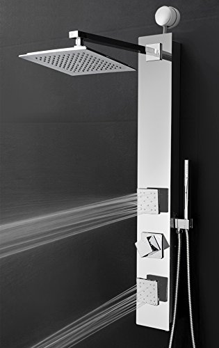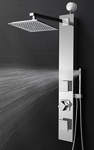 Perfetto Kitchen and Bath 35" Easy Connect Wall Mount Tempered Glass Mirror Finish Made Rainfall Style Multi-Function Massage Shower Panel Tower System (SP0061)