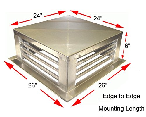 Product Description 304 stainless steel 4-Way Adjustable Metal Diffuser for Evaporative/Swamp Cooler, Cover Hole Size 24" x 24". - 304 stainless steel - Body dimension: 24"W x 24"L x 6"H - 1" width edge at the end of the body for easy installation. See image for details. - 4-way adjustable. 0