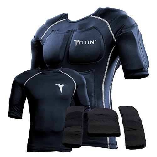 THE TITIN FORCE WEIGHTED SHIRT SYSTEM - 8 LBS OF HYDRO-GEL INSERTS - 1 14-POCKET INNER COMPRESSION SHIRT - 1 OUTER COMPRESSION SHIRT (X-LARGE, NAVY)